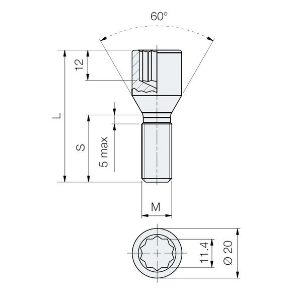 • M – średnica gwintu: 14 mm
