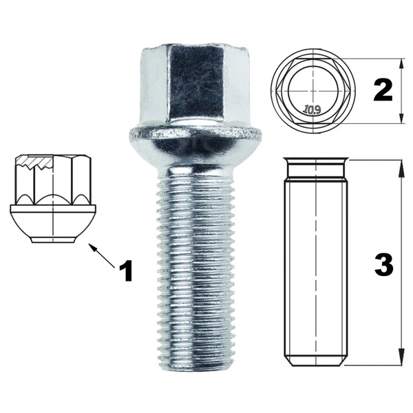 Śruba M14x1,5 kula R14, 35 mm, na klucz K17 – Carbonado